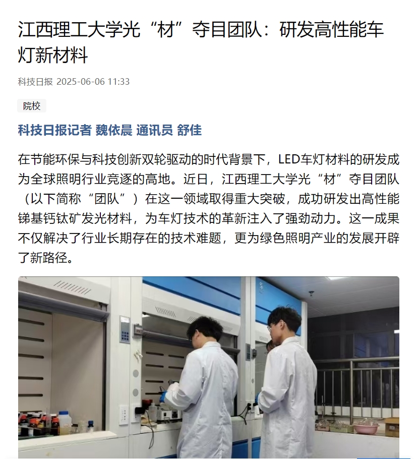 科研的价值在于应用。团队在研发过程中始终注重与产业界的紧密合作,与江西绿野汽车照明有限公司等企业建立了深度合作关系。