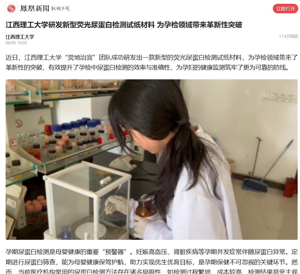 “荧地治宜”团队成功研发出一款新型的荧光尿蛋白检测试纸材料,为孕检领域带来了革新性的突破,有效提升了孕检中尿蛋白检测的效率与准确性,为孕妇的健康监测筑牢了更为可靠的防线。
