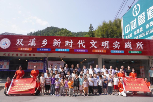 马克思主义学院“万名大学生进千站”文明实践服务团奔赴上犹县双溪乡新时代文明实践所,将融知识性、趣味性与教育性于一体的鲜活课堂“搬”到了双溪乡儿童身边。