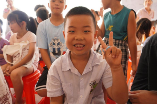 党委副书记徐志峰亲切地俯下身询问,一声声响亮的“开心!”让他脸上露出了欣慰的笑容。徐志峰赞许地点点头:“这就对啦!小朋友们在学校也要认真上课,多学本领,练好真本事,将来才能做有用的人!”他一边说着,一边亲手将精心准备的文具礼包送到孩子们手中。