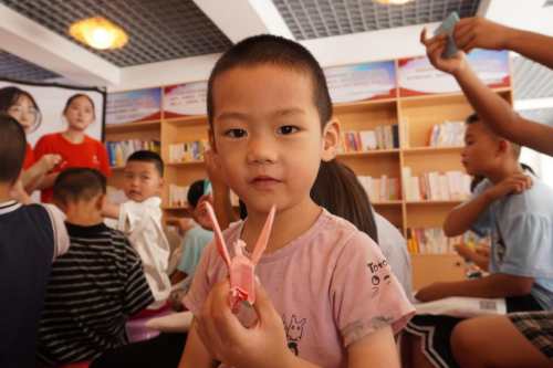 活动现场,团队成员黎玉帆化身“趣味教师”,开展了一场寓教于乐的暖心互动。黎玉帆“变”出准备好的彩纸,瞬间吸引了所有孩子的目光。“来,我们一起折一个会飞的梦想!”她的声音温柔而充满鼓励,从最开始的“折个小三角”,到关键的“翻折要对齐”,再到最后的“轻轻拉出翅膀”,每一个步骤都清晰易懂,眼神里满是耐心。