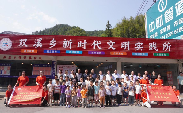 马克思主义学院“万名大学生进千站”文明实践服务团奔赴上犹县双溪乡新时代文明实践所,将融知识性、趣味性与教育性于一体的鲜活课堂“搬”到了双溪乡儿童身边。