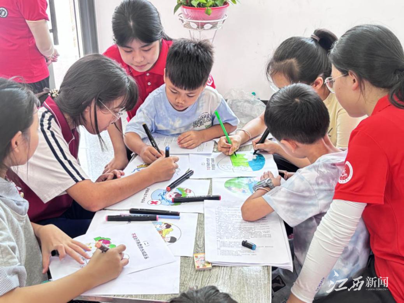 快乐假期,安全先行。实践队围绕暑期安全重点,开设了实用课堂。队员廖嘉的消防安全课干货满满,孩子们不仅学习逃生要点,还模拟拨打求救电话、进行实地演练,让知识真正“活”起来。针对“防溺水”,队员冯海燕通过故事强调其重要性,并带领孩子们绘制“防溺水”“六不准”手抄报。画笔描绘安全要点,意识根植幼小心灵。