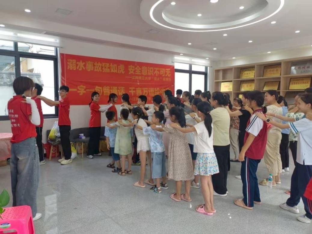 快乐假期,安全先行。实践队围绕暑期安全重点,开设了实用课堂。队员廖嘉的消防安全课干货满满,孩子们不仅学习逃生要点,还模拟拨打求救电话、进行实地演练,让知识真正“活”起来。针对防溺水,队员冯海燕通过故事强调其重要性,并带领孩子们绘制“防溺水六不准”手抄报。画笔描绘安全要点,意识根植幼小心灵。