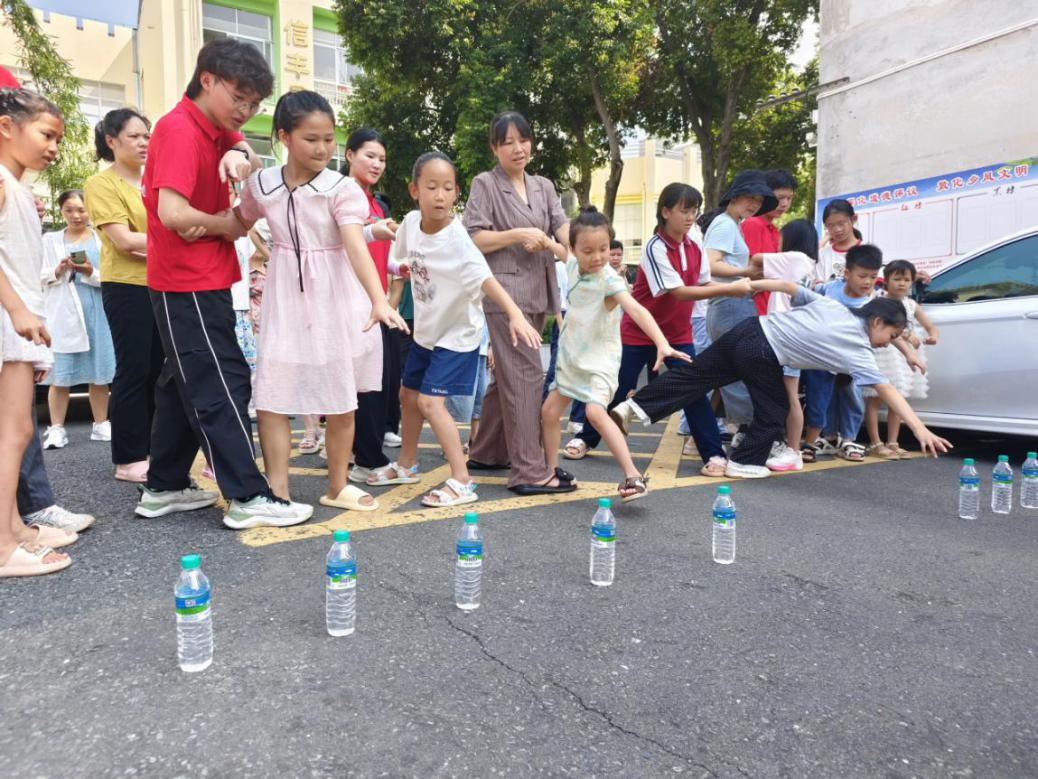 实践队队员精心设计了乡村生活气息浓厚的亲子游戏,让亲情在协作中升温。“捶背暖心”游戏中,家长与孩子在口令下互相捏肩捶背,简单的动作传递浓浓爱意,欢声笑语洋溢幸福。在考验默契的“协作取水”环节,孩子灵活取水,家长稳稳守护;或是家长细心指引,孩子默契配合。每一次成功触碰都伴随着欢呼,每一次扶持都是信任的见证。“最打动我的,是孩子跌倒时家长第一时间伸出的手,以及孩子尝试时家长全神贯注的眼神。”队员丁梦阳感慨道。