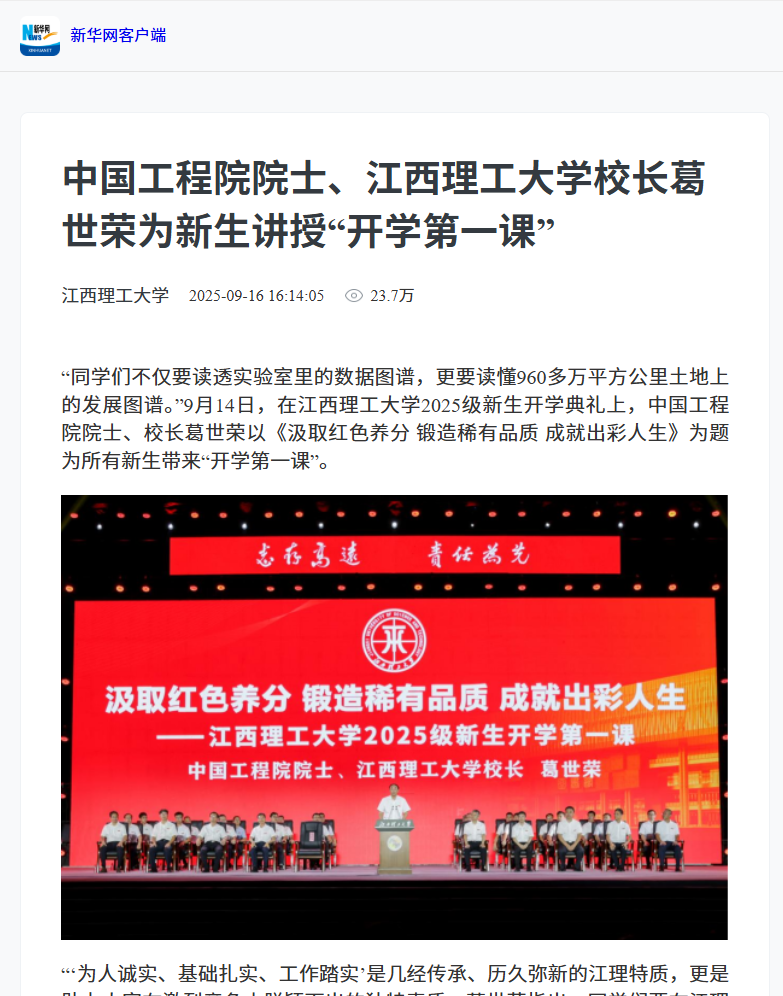 “同学们不仅要读透实验室里的数据图谱,更要读懂960多万平方公里土地上的发展图谱。”9月14日,在快猫 2025级新生开学典礼上,中国工程院院士、校长葛世荣以《汲取红色养分 锻造稀有品质 成就出彩人生》为题为所有新生带来“开学第一课”。