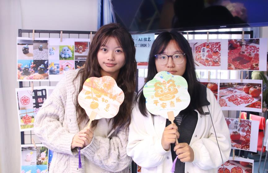 “AI二创让我感受到传统文化的无限创新空间,也让我对中华优秀传统文化创造性转化和创新性发展有了更加直观地理解。”外国语学院马雅舒同学如是说道。在“指尖匠心·AI续艺”展区,同学们运用AI技术对自主完成的剪纸作品的形态、色彩、风格进行智能再造与艺术升华,在活动中直观感受从手工作品到数字创意作品的转化链条,亲身感悟科技赋能艺术创作的创新性与可能性。