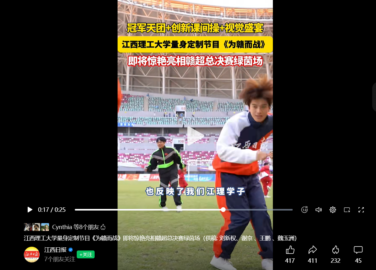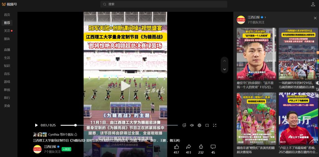上一条:《江西日报视频号》:《为赣而战》惊艳赣超总决赛现场 下一条:《大江新闻》:视频|快猫 《为赣而战》燃爆赣超总决赛