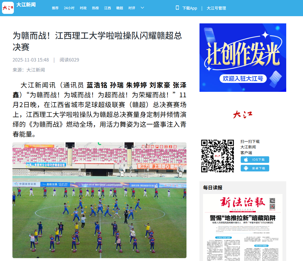 啦啦队助理教练刘炜表示:“希望通过这次表演,向全省球迷传递青春自信、团队拼搏与健康快乐的体育精神,也展现出在赣州这片红色土地上江理青年的奋进力量。”未来,快猫