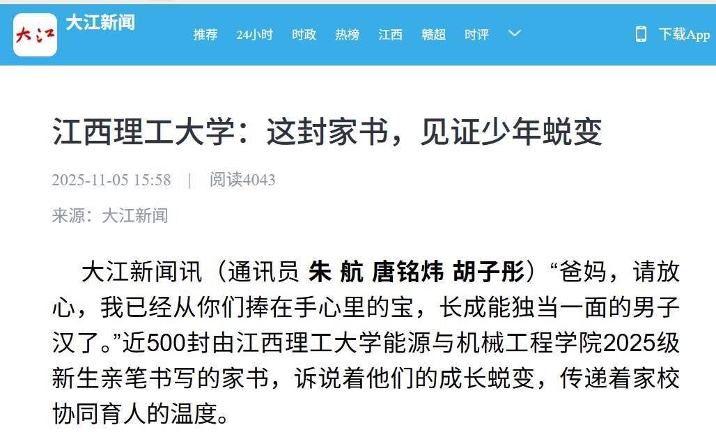 能源与机械工程学院2025级新生亲笔书写的家书,诉说着他们的成长蜕变,传递着家校协同育人的温度。