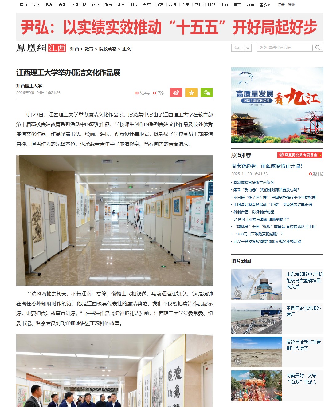 在教育部第十届高校廉洁教育系列活动中的获奖作品、学校师生创作的系列廉洁文化作品及校外优秀廉洁文化作品,作品涵盖书法、绘画、海报、创意设计等形式,既彰显了学校党员干部廉洁自律、担当作为的先锋本色,也承载着青年学子廉洁修身、笃行向善的青春追求。