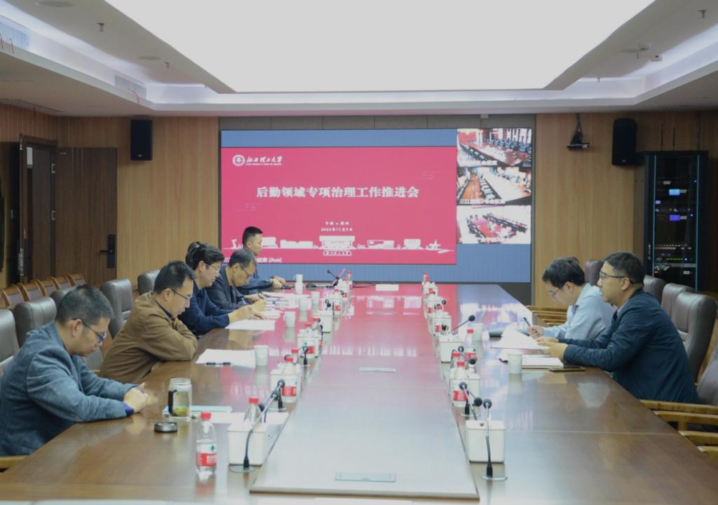 在三江校区濂溪楼2号会议室召开学校后勤领域专项治理工作推进会。党委常委、副校长黄志繁出席会议,相关部门负责人员参加会议。会议由校园服务与校产中心主任许海主持。