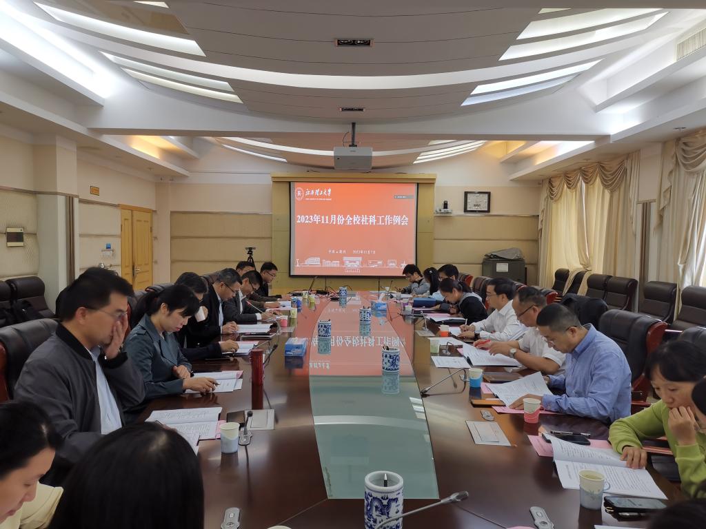 社会科学处成立以来第一次工作例会在红旗校区原行政楼第二会议室召开。校党委常委、副校长黄志繁出席会议。各学院分管科研副院长及相关人员、社会科学处全体工作人员参加会议,南昌校区相关人员视频参会。会议由校社会科学处副处长籍明明主持。