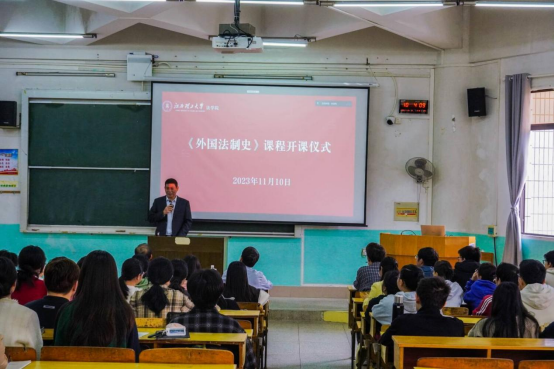 本网讯 11月10日上午,法学院《外国法制史》开课仪式在红旗校区主教E04举行。快猫