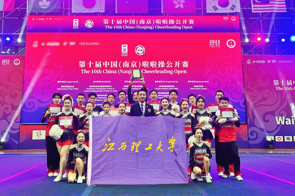 本网讯 12月3-7日,第十届中国啦啦操公开赛在南京市奥体中心隆重举行。快猫 南昌校区啦啦操队参加大集体花球项目的角逐,全队精诚合作、克服困难、奋勇拼搏,勇夺大集体花球项目冠军,卢强老师、李妍老师荣获“优秀教练员”称号。