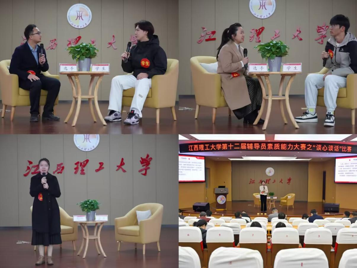 第十二届辅导员素质能力大赛之“谈心谈话”比赛在红旗校区赵氟隆学术报告厅举行。本次比赛由校工会、党委学生工作部联合举办,校党委常委、统战部部长汪锋锁,党委学生工作部及各学院学生工作分管同志以及赣州校区全体专兼职辅导员参加比赛。