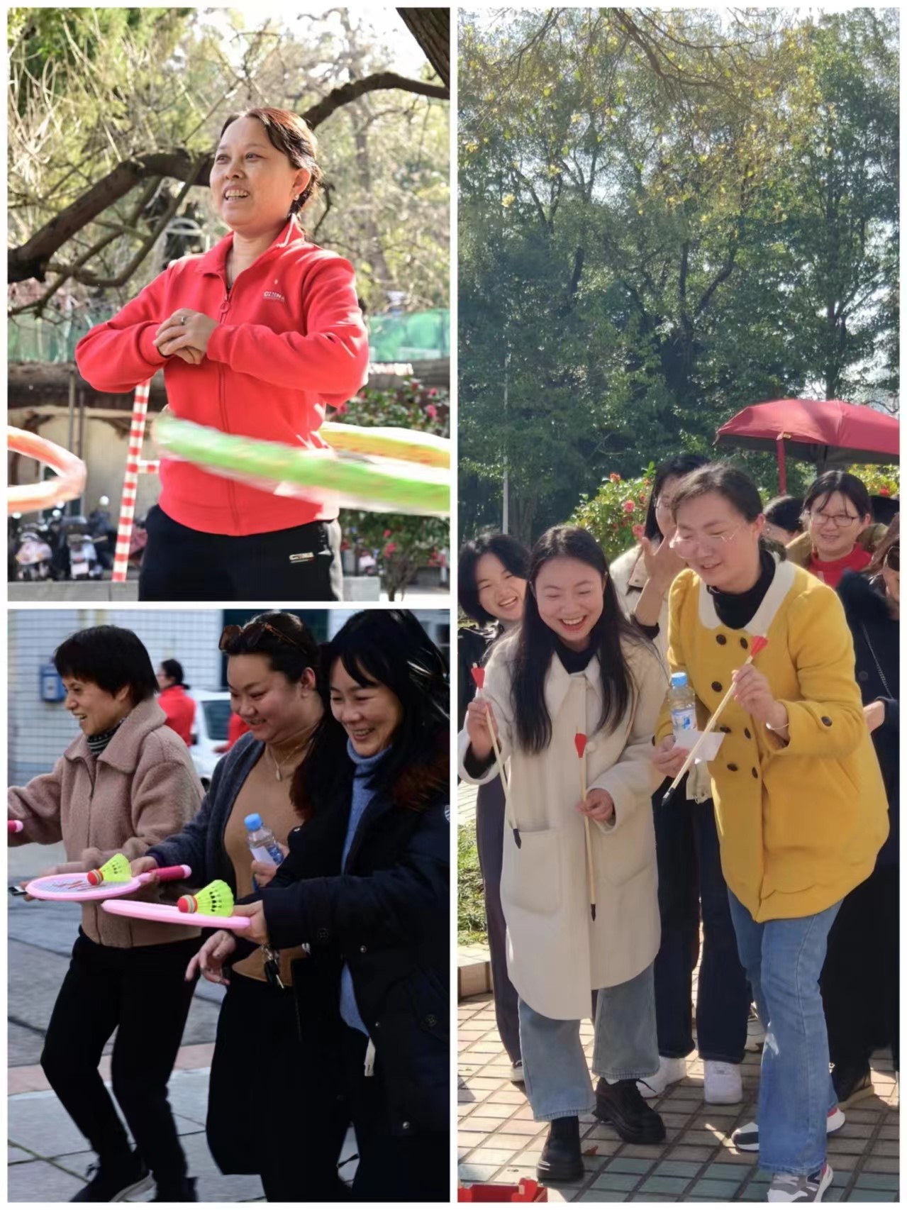 活动设立线下打卡加游戏通关模式,安排了呼啦圈、投壶和单手托球跑等游戏环节,通过轻松有趣的方式,让女职工们在运动中感受到节日的快乐。在呼啦圈环节,女职工们展现出了高超的技巧和优雅的身姿,她们或轻盈旋转,或快速穿梭,在久违的阳光下燃烧着卡路里。投壶则考验大家的耐心和准确度,女职工们或屏息凝神,或轻松投掷,每一次成功的投壶都彰显了她们的精湛技艺。单手托球跑是身体协调的能力的游戏,更是教育事业需一步一步平稳地建设的映射。活动期间校园充满欢声笑语,乐趣非凡。