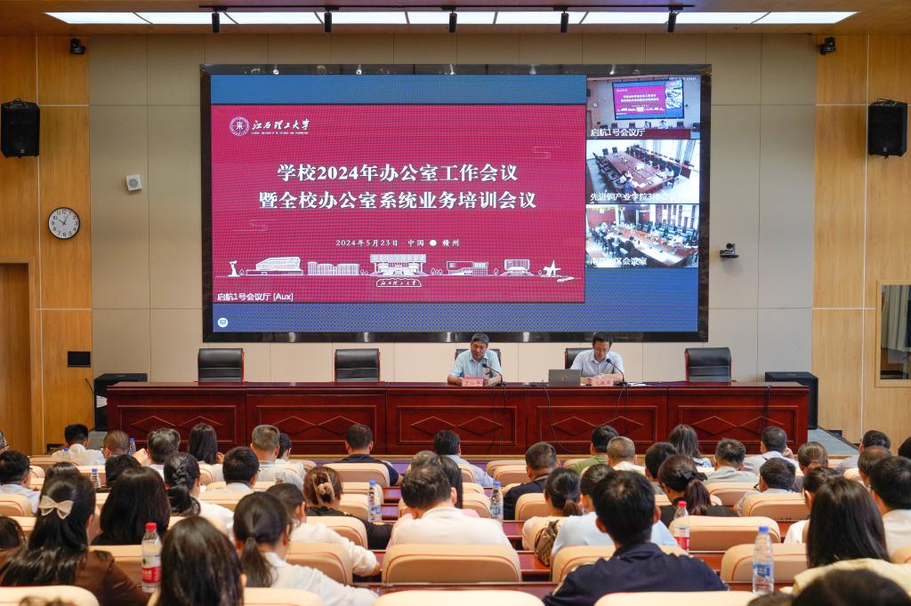 2024年办公室工作会议暨全校办公室系统业务培训会议在三江校区启航会议中心1号会议厅举行。各二级单位、各学院(学部)、机关各单位分管办公室工作的领导以及办公室工作人员参加培训,南昌校区、先进铜产业学院同步视频参会。校党委副书记罗仙平同志在会上讲话,会议由校党委(校长)办公室主任熊淑华同志主持。