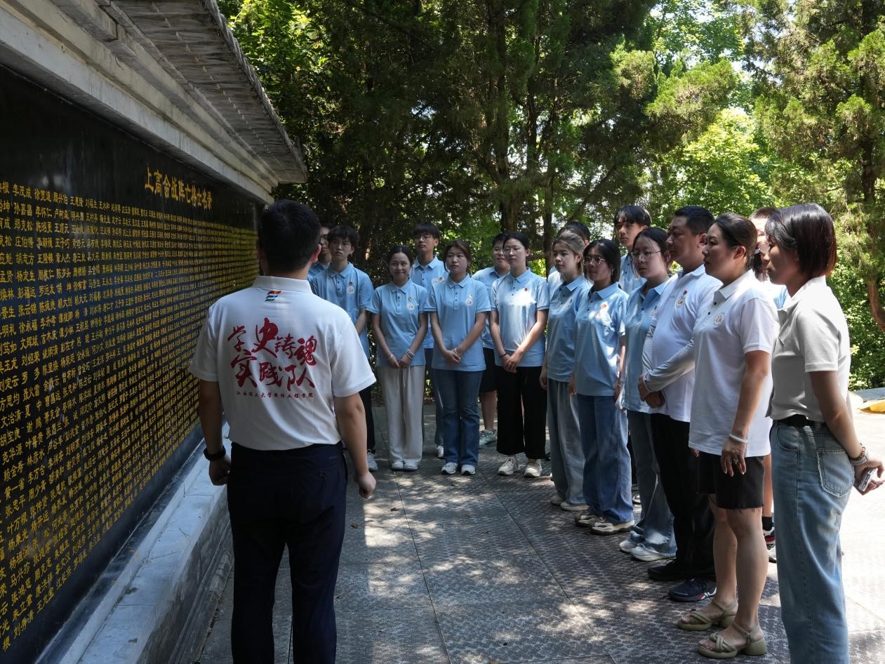 软件工程学院2024年暑期“三下乡”学史铸魂社会实践队满怀对上高会战英烈的敬仰之情,前往上高会战抗日阵亡将士陵园开展“缅怀革命先烈、重温会战历史”爱国主义主题教育活动。学院学工办负责人张建栋,辅导员吴洁、方瑜、武绍杰及暑期“三下乡”社会实践队队员等二十余名师生参与了本次活动。