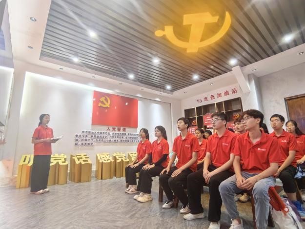 在大坝游击队陈列馆,实践队开展了一次别开生面的主题团日活动。实践队队长、稀土学院创新试验222班团支书廖梦琪从《龙南县志》出发,围绕“有压迫的地方就会有反抗”“铁心跟党闹革命”“不屈不挠革命到底”三个方面,生动地向实践队员阐述了武当镇的历史渊源和大坝游击队的革命精神。实践队副队长、创新试验221班团支书孔宇曦讲述“大坝游击队队员叶祥腾三写入党申请书”的故事引得队员们纷纷动容。