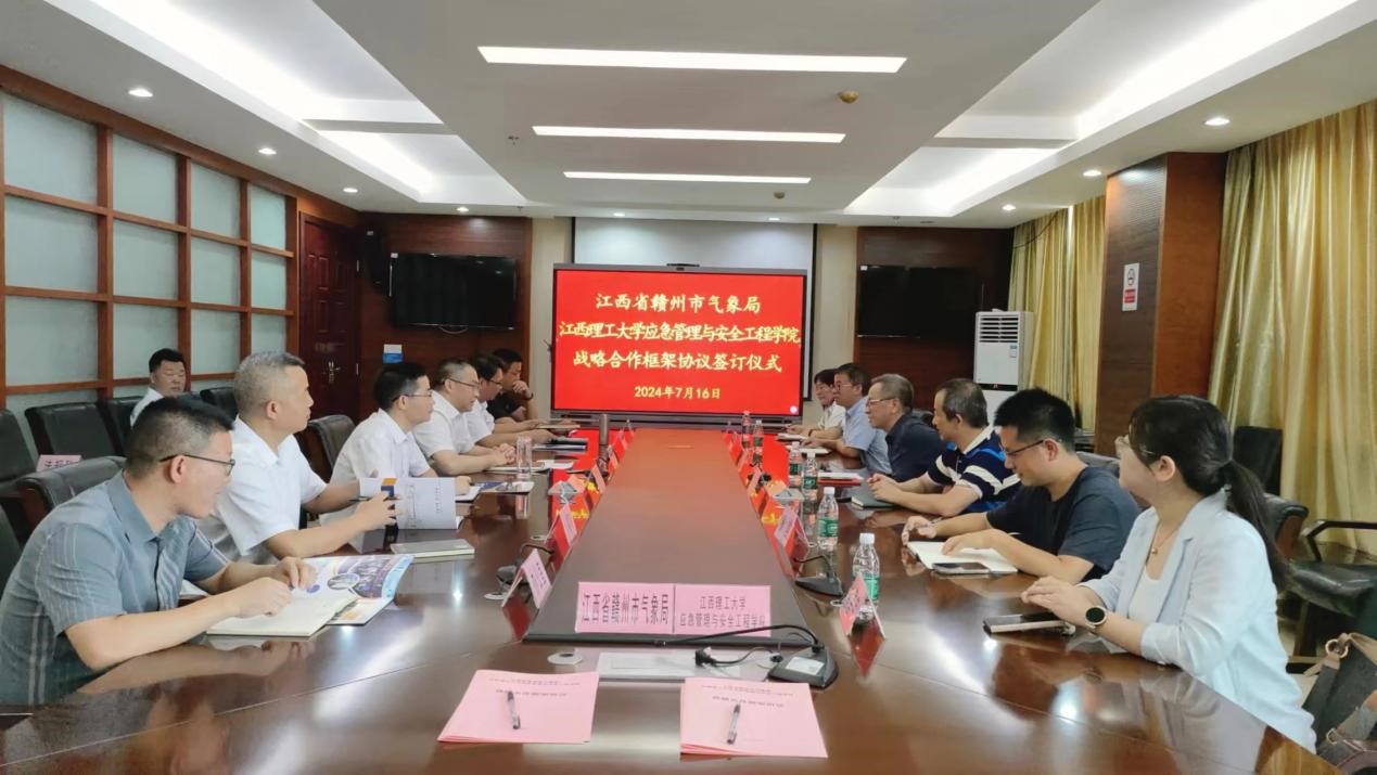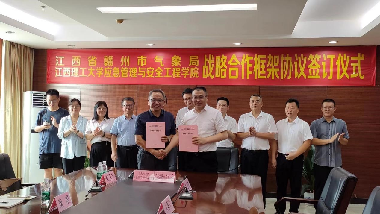 本网讯 7月17日下午,应急管理与安全工程学院院长彭频、党委副书记李肖锋、副院长王晓军以及学院教师代表前往赣州市气象局签订战略合作框架协议。