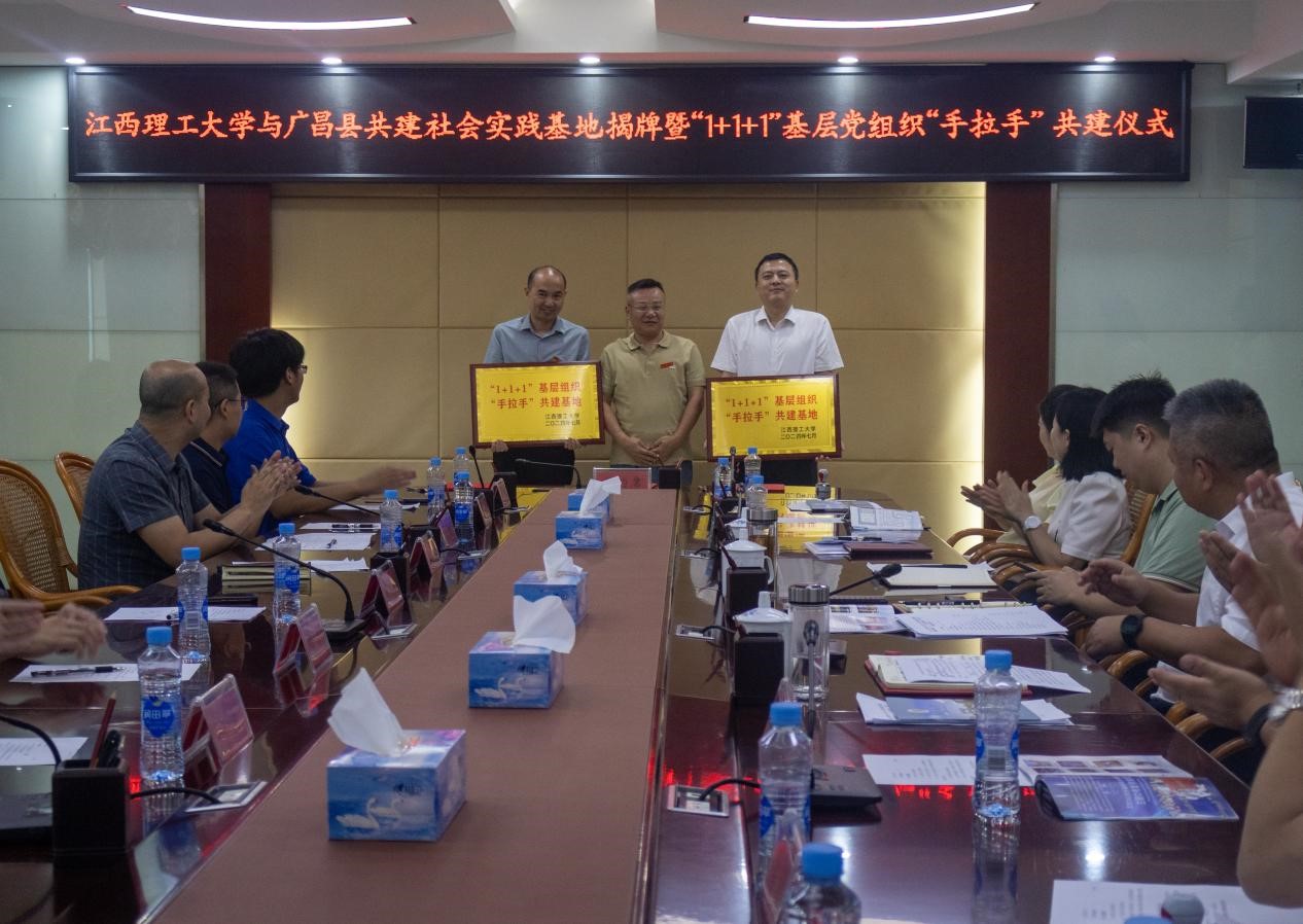 本网讯 7月15日,能源与机械工程学院第三党支部与广昌县旴江镇机关党支部、江西省广德环保科技有限公司党支部,开展“1+1+1”基层党组织“手拉手”共建签约仪式。广昌县委书记吴自胜,江西省广德环保科技有限公司董事长罗天贵等主要负责同志出席,快猫