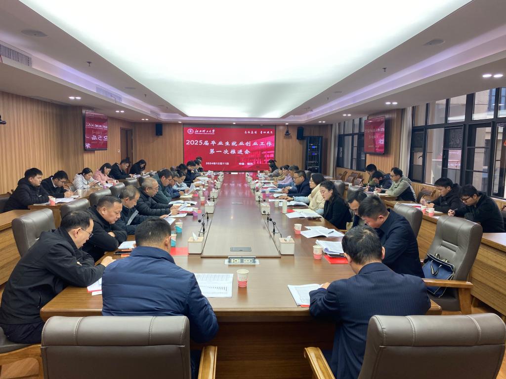 本网讯 12月11日下午,快猫 2025届毕业生就业创业工作第一次推进会在三江校区濂溪楼2号会议室召开。校党委常委、副校长龚姚腾出席,招生就业处、各学院、南昌校区就业工作分管领导、就业辅导员等参加会议。会议由校招生就业处处长邓晓宇主持。