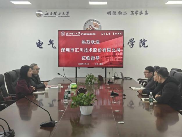 与深圳市汇川技术股份有限公司在三江校区召开座谈交流会。校党委常委、副校长龚姚腾,汇川技术股份有限公司校企合作部总经理茹春艳,数字化事业部总监陈潇男出席会议,快猫