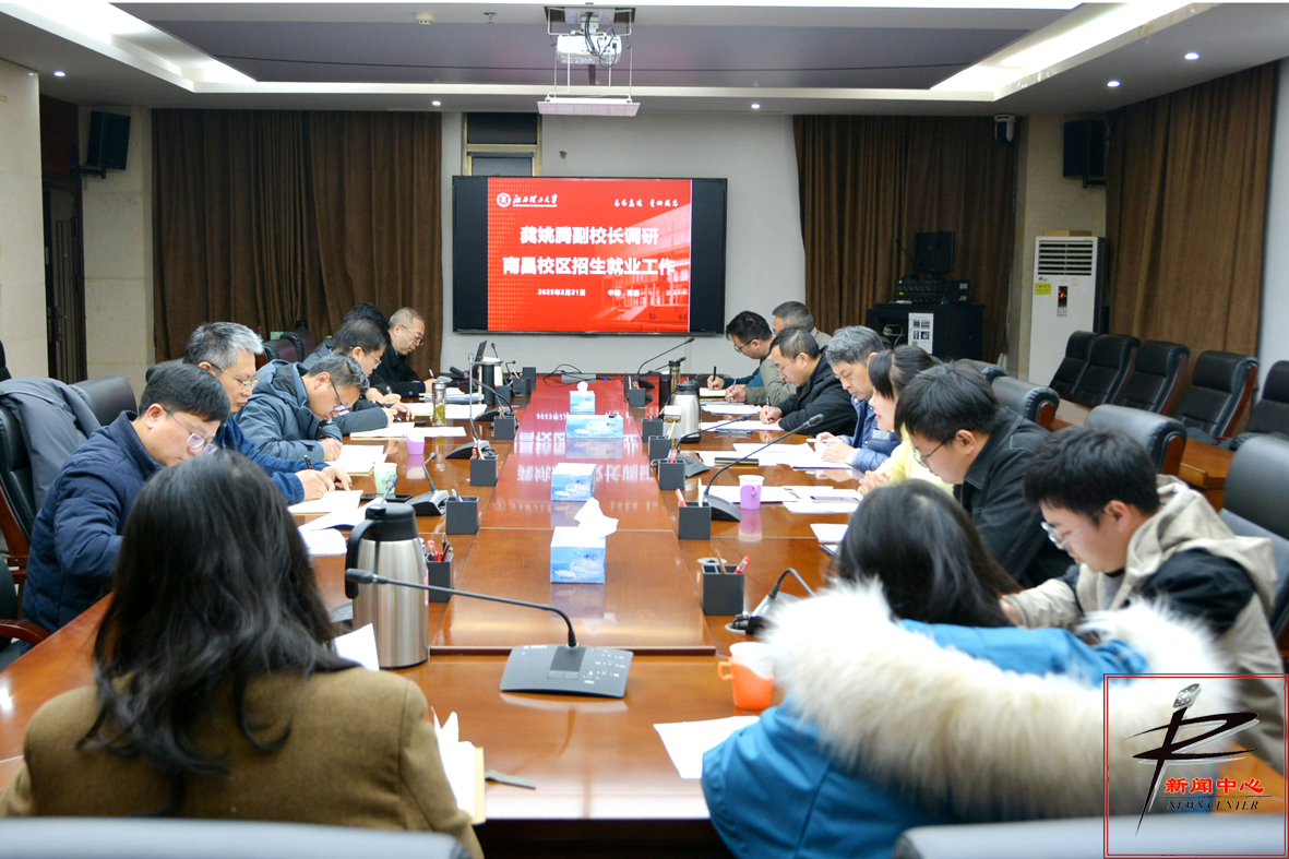 本网讯 2月21日,校党委常委、副校长龚姚腾到南昌校区调研指导招生就业工作,并在图书信息综合楼第一会议室主持召开调研座谈会。校招生就业处、南昌校区管委会和各学院相关负责人参加会议。