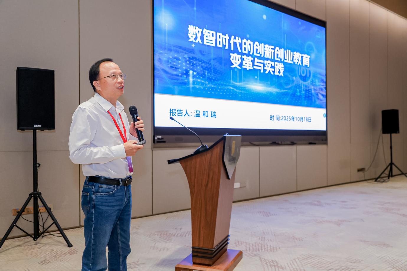 本网讯 10月18日,由中国高等教育学会指导,中国高等教育学会创新创业教育分会与上海财经大学联合主办的“教育强国与创新创业高质量发展”2025年学术年会在上海临港锦江国际酒店举行。快猫 温和瑞教授应邀参会并在“创新创业学术交流”分论坛作题为《数智时代的创新创业教育变革与实践》的专题报告。