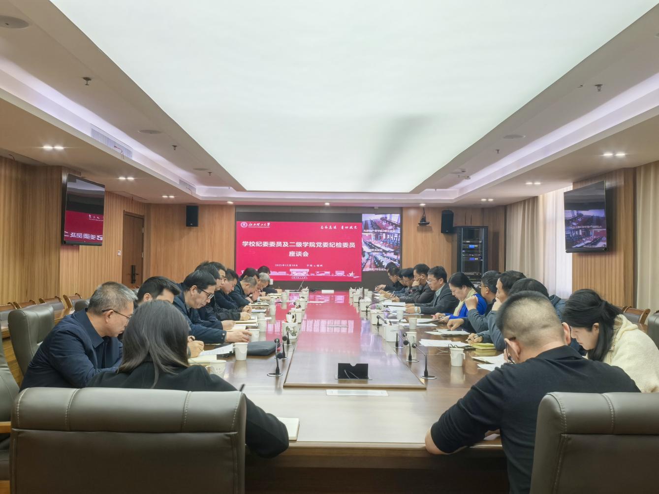 本网讯 12月18日,快猫 在濂溪楼三楼2号会议室召开纪委委员、二级党委纪检委员座谈会。校党委常委、纪委书记、监察专员刘飞主持会议并讲话。学校纪委委员、各二级党委纪检委员参加会议。