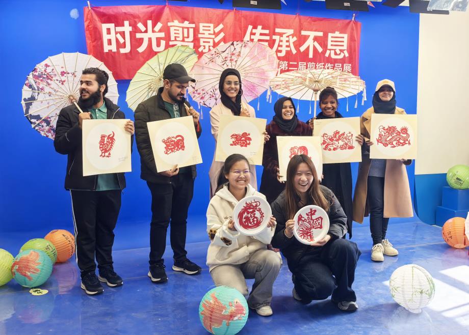 国际教育学院留学生的剪纸作品也在本次展览中呈现。不同文化视角与传统中国剪纸技艺的碰撞,形成了别具一格的跨文化对话,生动体现了中华优秀传统文化的国际吸引力与包容性。